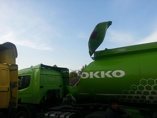 По информации автора, два бензовоза принудительно остановили и поставили поперек дороги на мосту в районе завода "Энергомашспецсталь".