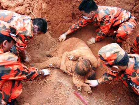 С большим трудом, лидер команды спасателей просунул руку через узкую щель в стене к телу женщины. Он надеялся, что она еще жива. Тем не менее, ее холодное тело, говорило о том, что она скончалась. Вместе с остальной командой он покинул этот дом, чтобы исследовать следующее рухнувшее здание. Но непреодолимая сила звала руководителя группы к дому погибшей женщины. Снова, опустившись на колени, он просунул голову через узкие щели, чтобы исследовать место под телом женщины. Вдруг он вскрикнул от волнения: “Ребенок! Тут ребенок!“.