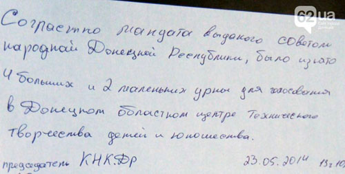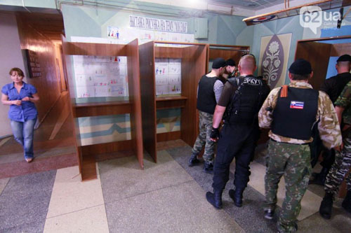 Сегодня, 23 мая, около десяти активистов ДНР навестили избирательный участок в Донецком областном центре технического творчества детей и юношества.