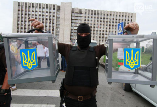 Ими было изъяты урны для голосования. Сотрудников милиции на участке не было.