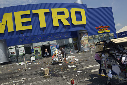 28 мая террористы так называемой «Донецкой народной республики» разграбили супермаркет «Метро», который находится в районе аэропорта в Донецке. После того как люди с оружием ушли, в "Метро" рванули мародеры из числа местных жителей - граждане "Донецкой республики". Грабеж длился двое суток.