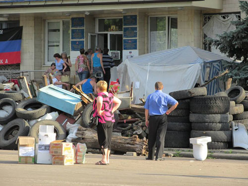 Краматорск, вечер 5 июля 2014 года. В брошенном боевиками ДНР здании горисполкома наиболее предприимчивые горожане участвуют в разграблении накопленных продуктовых запасов. Судя по опубликованным фотографиям, боевики от голода не страдали, но и в излишествах тоже замечены не были.