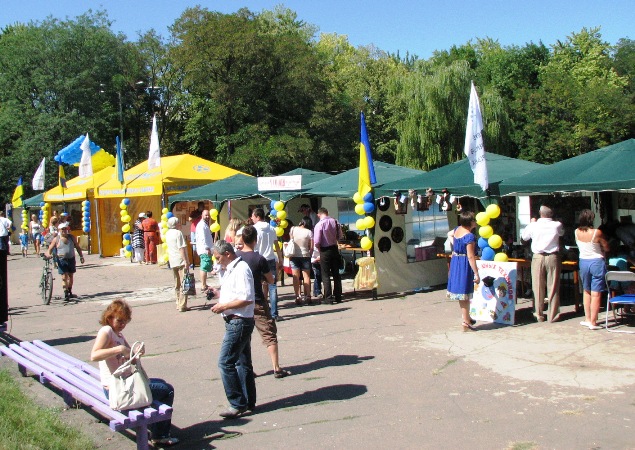 С утра, стараниями Клуба предпринимателей, "Пани" и общественников, у фонтана в Сквере профсоюзов разместились палатки со всякими украинскими вкусностями.