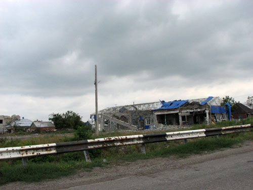 В Семеновке еще теплится кое-где жизнь. Но на ближайшем блок-посту настоятельно не рекомендуют покидать машину и ступать на обочину. Потому что здесь везде можно нарваться на железный "сюрприз", к которым, кстати, периодически добавляются ловушки-растяжки, кем-то устанавливаемые по ночам. Правда, это не мешает безвестным рекламщикам клеить объявления о продаже дешевого цемента прямо на развалинах зданий.