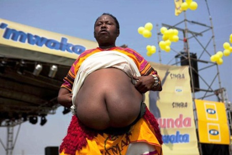 Этот мужчина сумел превратить несовершенство своего тела в неплохой источник дохода. Его огромный, нависающий живот удивительным образом похож на другую часть тела, за что Моисея КАВУЙЯ в шутку называют «человеком-попой». 59-летний чудак работает танцором. И не где-нибудь, а у президента своей страны.