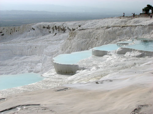 Так возникли травертины Памуккале - белоснежная ломкая поликристаличесская порода, образовавшая замысловатые террасы и бассейны, насыщенные прозрачной водой цвета аквамарина.