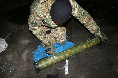 "Изъят «Шмель» российского производства. По показаниям задержанных, он был получен в Белгороде (Российская Федерация)", - еще раз сказал он.