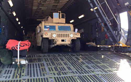 25 марта в международный аэропорт Борисполь прибыл самолет с первой партией военных автомобилей HMMWW (Хамви) для Вооруженных Сил Украины от США.