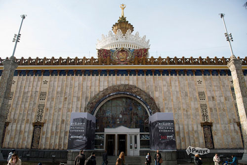 Называется она «Вещдоки. Донбасс. 365 дней АТО». Особый цинизм заключается в том, что размещена выставка в павильоне "Украина" на ВДНХ. Если кто не знает, аббревиатура расшифровывается как Выставка Достижений Народного Хозяйства.