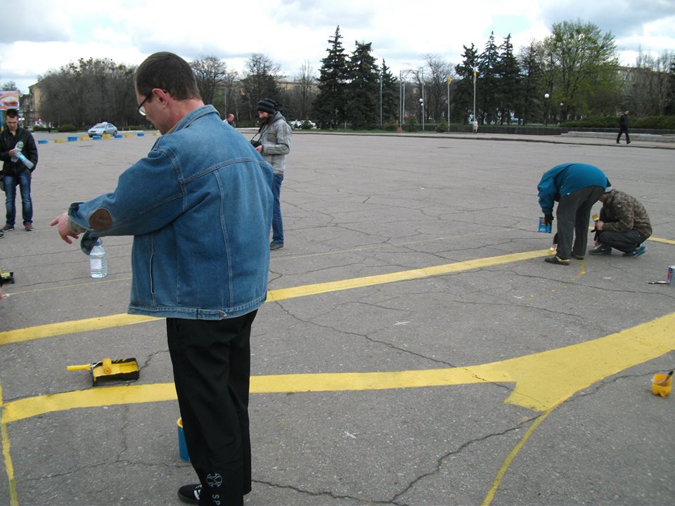 Таким образом патриотически настроенные горожане решили украсить центральную площадь. И нужно признать, что это у них получилось весьма качественно и зрелищно.