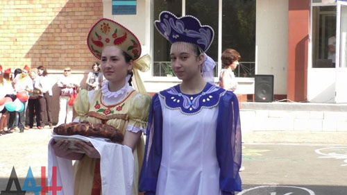 В честь столь радостного и волнительного события, в донецкой школе расстарались сделать так, чтобы певец из Госдумы чувствовал себя не в гостях, а как дома. И потому, с учетом постоянного места его проживания и СССРовского прошлого, на девушек с хлеб-солью напялили кокошники, а на остальных детишек надели пахнущие нафталином пионерские пилотки.