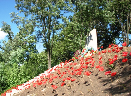 У междугородной трассы сообщением Краматорск-Славянск алеет искусственными маками памятник.