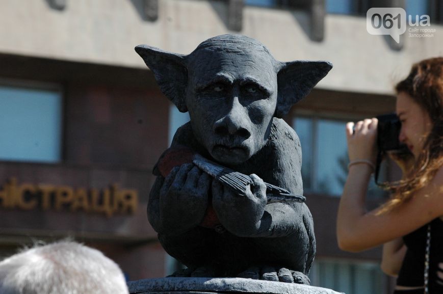 В Запорожье 24 августа решили знатно потроллить пропагандистскую бредятину о событиях в Украине, открыв на площади Героев у стен областной госадминистрации памятник интернет-мему: "русскому миру", скорбящему над русскоязычным снегирем".