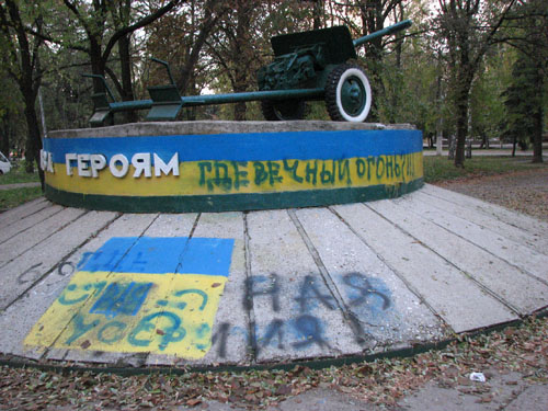 В ночь на 24 октября в Краматорске снова подвергся нашествию озабоченных любителей сепаратизма памятник Великой Отечественной войны "Пушка", что на улице Вознесенского.
