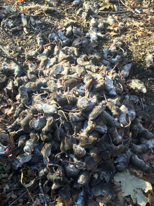 Волонтер Юрий Мысягин опубликовал у себя в Facebook чудовищные фото с горой убитых мышей и скрин переписки с бойцом, который просит помочь с борьбой против грызунов.