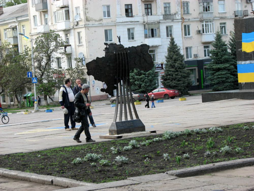 Любопытным элементом пополнилась сегодня, 12 мая, центральная площадь Краматорска: здесь разместилась кованая карта Украины.