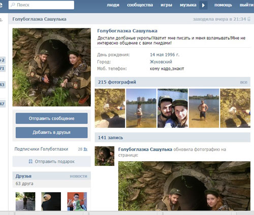 "Интересно проследить за тем, как с тех пор сложилась ее судьба. Судя по профилю, девушке недавно исполнилось 20 лет, а приехала воевать на Донбасс она в совсем юном возрасте из Московской области.