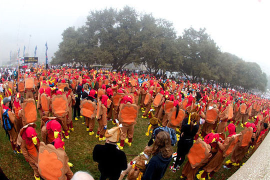 Самое большое сборище людей в костюмах рождественской индейки произошло во время ежегодной тематической церемонии 44th Annual Capital One Bank Dallas YMCA Turkey Trot в Далласе, штат Техас, 24 ноября 2011 года. Число участников составляло 661 человек.