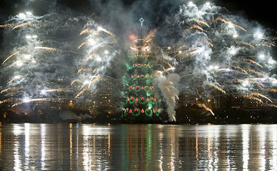 Самая большая плавучая рождественская елка высотой 85 метров была установлена в Рио-де-Жанейро в 2007 году. Спонсором рекорда стала крупнейшая бразильская страховая компания Bradesco Seguros e Previd?ncia.