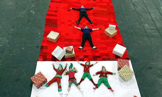 Самый большой чулок для подарков длиной 32,56 метров и шириной в 14,97 метров был создан в 2007 году в рамках акции британского общества по защите детских прав Children’s Society.