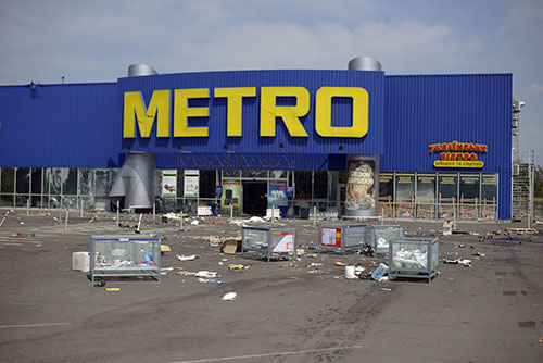 28 мая террористы так называемой «Донецкой народной республики» разграбили супермаркет «Метро», который находится в районе аэропорта в Донецке. После того как люди с оружием ушли, в "Метро" рванули мародеры из числа местных жителей - граждане "Донецкой республики". Грабеж длился двое суток.
