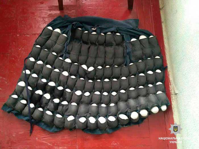 В Кременчуге Полтавской области охранники птицефабрики передали в руки сотрудников правоохранительных органов 35-летнего работника предприятия, который пытался вынести с фабрики куриные яйца, пользуясь "спецодеждой" (на фото).