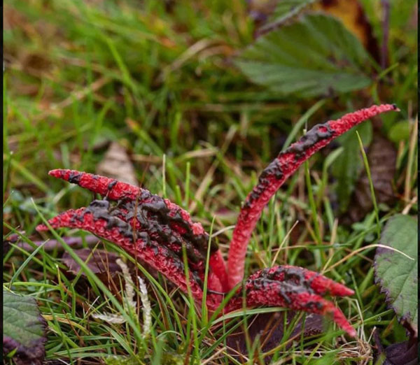 Экологи отмечают, что гриб выглядит устрашающе, но не является ядовитым. Он напоминает красные длинные пальцы или щупальца, покрытые слизью. Гриб источает запах, напоминающий гниющую плоть.