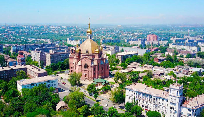 Город Мариуполь. Известен металлургическими комбинатами и выходом к Азовскому морю.