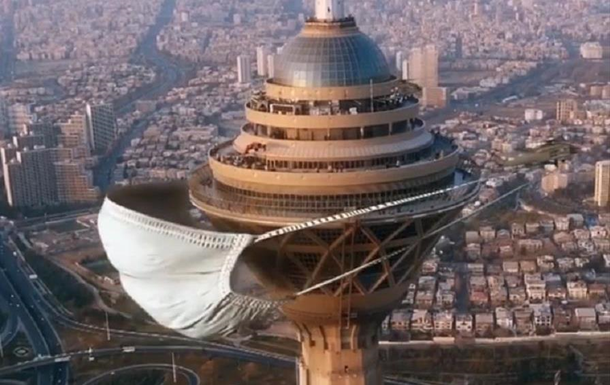 Два вертолета надели громадную маску на самое высокое здание Ирана - небоскреб Бордже Милад. Автор этого действия, иранский художник Хамид Эбрахимния, опубликовал видео события на своей странице в Instagram.