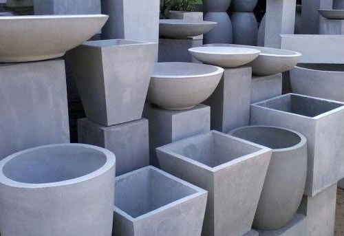 У продажу є форми з бетону, які встановлюють на землі або вкопують в неї для висаджування рослин. Такі вироби досить міцні, вони мають форму вази, чаші, різних геометричних фігур. Краще не закопувати їх в землю, а фарбувати.