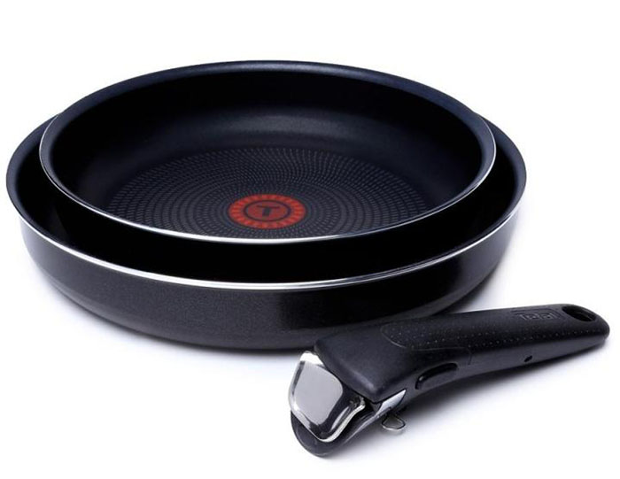 Французская компания известна миру с середины двадцатого века. Сейчас производственные мощности находятся в более чем ста десяти странах мира. В 1954 году разработчики корпорации «Тефаль» создали первую сковороду с антипригарным покрытием, перевернув представления о посуде для жарки. Не керамическая, а титановая поверхность максимально устойчива к механическим повреждениям и негативному внешнему воздействию. Такое покрытие не расслаивается со временем. Сковородки от бренда «Тефаль» нередко выбирают для томления на жару, чтобы получить особенный, насыщенный вкус продуктов. Встречаются в коллекциях и удобные модели со съемными ручками. К преимуществам посуды относятся: