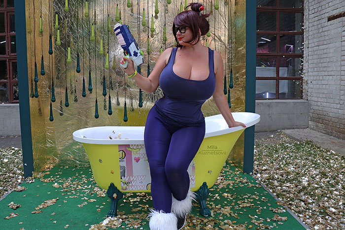 Миле Кузнецовой 31 год. Известность она получила благодаря пышному бюсту. Причем, это натуральная грудь, а не накачанная силиконом. Рост девушки составляет 173 см, а объем груди - 115 см.