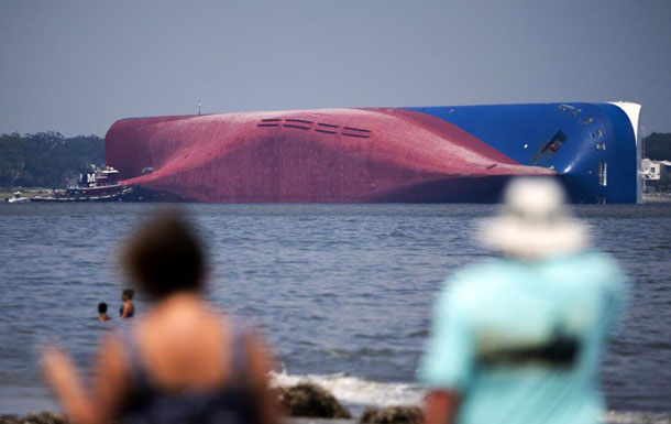 Корабль вышел из американского порта Брансуик в штате Джорджиа осенью прошлого года, но дал крен и перевернулся. Произошел пожар. Судно перевозило несколько тысяч новых автомобилей.
