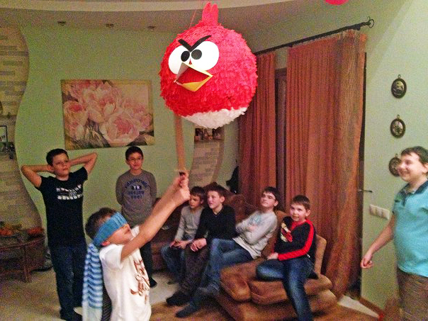 В таком случае, нужно лишь дергать за веревочки, пока не обнаружиться та самая, которая откроет пиньяту. Такая версия идеально подходит для детей младшего возраста.