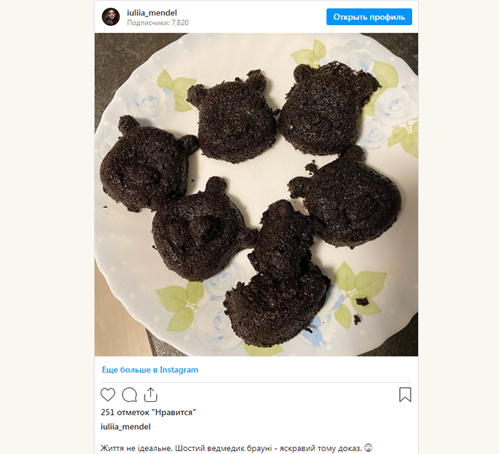 «Жизнь не идеальна. Шестой мишка брауни — яркое тому доказательство», — написала она.
