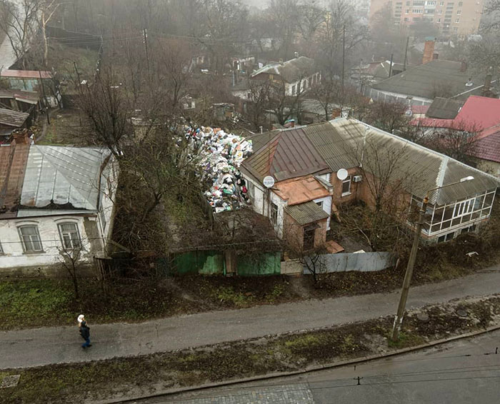 "Татьяна Приходько, владелица частного дома, последние как минимум 15 лет собирает мусор во дворе. Эта куча уже выше ее дома. После многочисленных жалоб соседей коммунальные службы приехали с пятью самосвалами, чтобы вывезти мусор на Макуховскую свалку", – говорится в сообщении