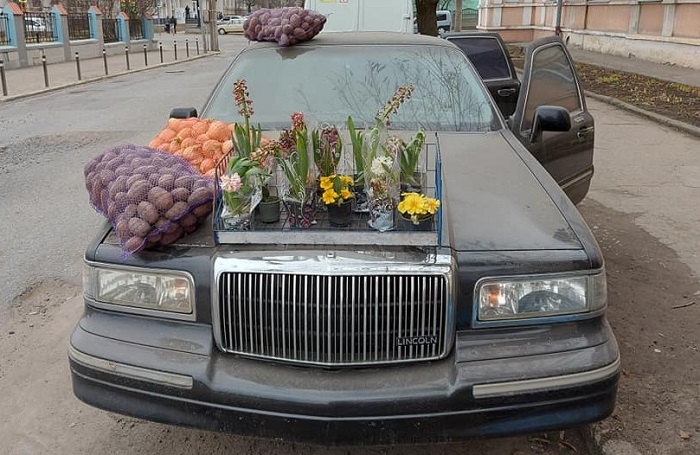 В Черновцах начали продавать картошку и лук прямо из лимузина. Этот "эксклюзив" попал в объектив камеры, и местные жители публикуют фотографии в сети.