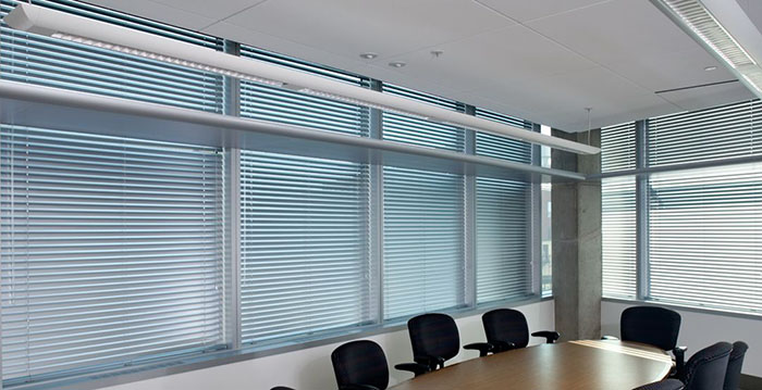 - Алюминий – самый простой и сдержанный вид горизонтальных жалюзи. Изделие надежно справляется с защитой от дневного солнечного света и придает комнате строгий вид. Зачастую встречается в офисных и медицинских помещениях, но можно увидеть в жилых комнатах в стиле hi-tech. Палитра цветовых оттенков вас не разочарует.