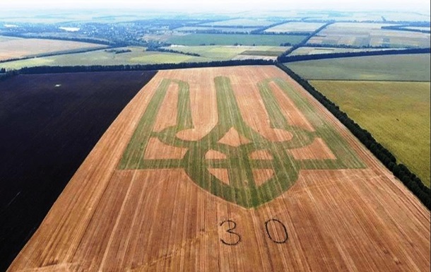 В селе Серединка Винницкой области аграрии на поле с горчицей создали самый большой живой герб Украины. В ширину он более 500 метров, а в длину – более одного километра.