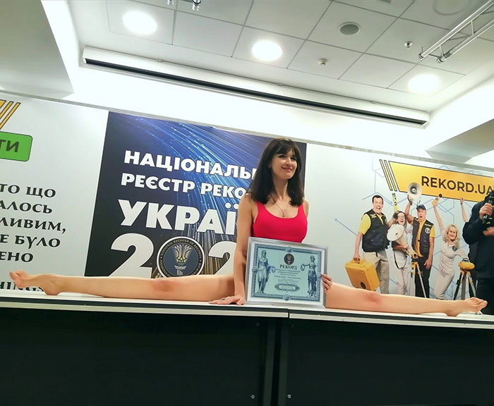Диетолог из Полтавы Анна Мохонько попала в украинскую книгу рекордов как обладательница самых длинных ног. Кстати, ее поперечный шпагат «побил» результат российской балерины Анастасии Волочковой.