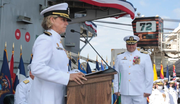 Под ее командованием корабль вместе с ударной группой отправился из Сан-Диего в зону запланированного развертывания в мировом океане.