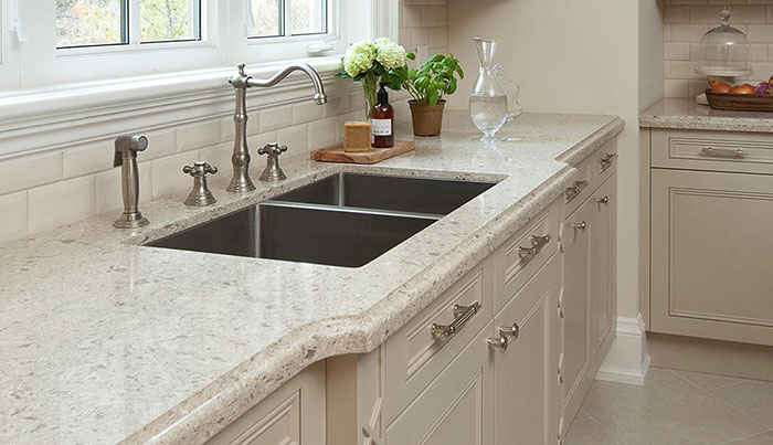 - Врезная. Для установки врезной мойки в камне проделывается отверстие соответствующей формы. Можно выбрать мелкую или глубокую чашу, установить решетку для сушки посуды, разделочную доску и другие функциональные элементы.