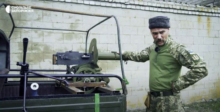 Портал The Drive звернув увагу на відеосюжет "Суспільне. Запоріжжя" про місцеву тероборону, що захищає наші позиції на Півдні України. Авторам цього сюжету бійці Запорізької тероборони показали свою "тачанку" на базі автомобіля ЛуАЗ, озброєну кулеметом "Максим".