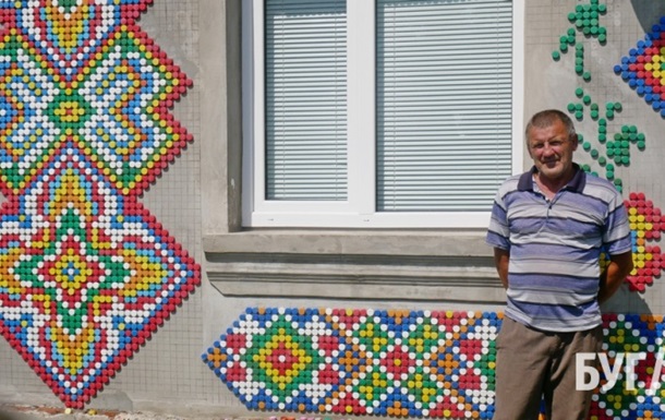 Творець "вишиванки" зізнався, що ідея народилася за рахунок художниці із Закарпаття, яка теж прикрасила свій будинок різнобарвними кришечками.