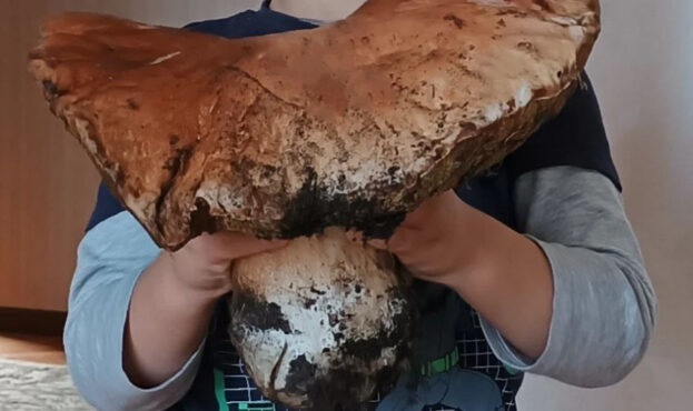 На Волині знайшли гігантський білий гриб. Він настільки великий, що за ним буквально може сховатися людина. Про це пише Agronews.