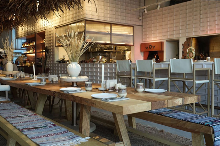 Для того, щоб враження від ресторану були ще більш яскравими, з України було привезено косівську розписну кераміку. Триколірна гама – жовтий, зелений, коричневий – це кольоровий код гуцульської кераміки, пов’язаний зі сприйняттям природи (сонце, гори, земля). Її століттями виготовляють майстри у Косові, а з 2019 року внесено до світової культурної спадщини ЮНЕСКО.