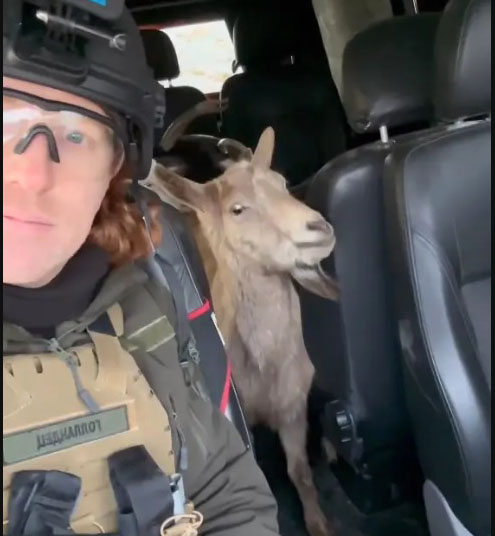 Волонтер Денис Христов евакуював із прифронтового села Карлівка на Донеччині чоловіка та всіх його тварин, включно із цілим стадом кіз. Для цього довелося найняти фуру.
