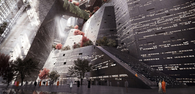 Це вертикальний мегаполіс довжиною 170 кілометрів та пів кілометра заввишки, із висячими садами, аеропортами та промисловістю, без забруднення, автомобілів і зі швидкісним громадським транспортом.