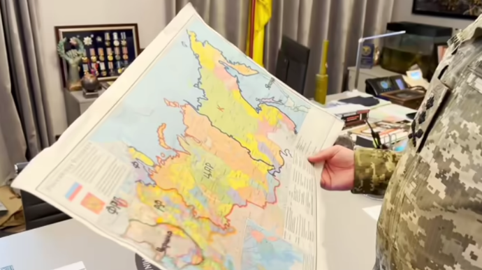Волонтер Сергій Притула повідомив у Facebook, що карту з кабінету очільника ГУР Кирила Буданова із розділеною на окремі суб'єкти Російською Федерацією, продали на аукціоні за 14 млн гривень.