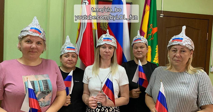 Російські вчителі знову «купилися» на тупий розіграш пранкера - вони одягли шапочки з фольги, «щоб захиститися від супутників НАТО». Про це розповів Телеграм-канал Astra.
